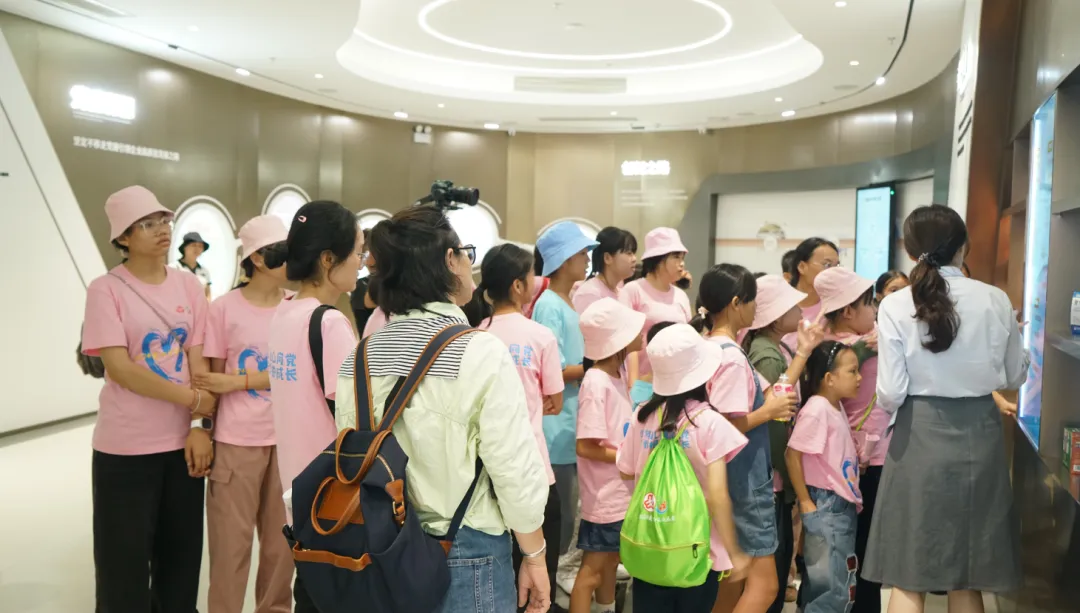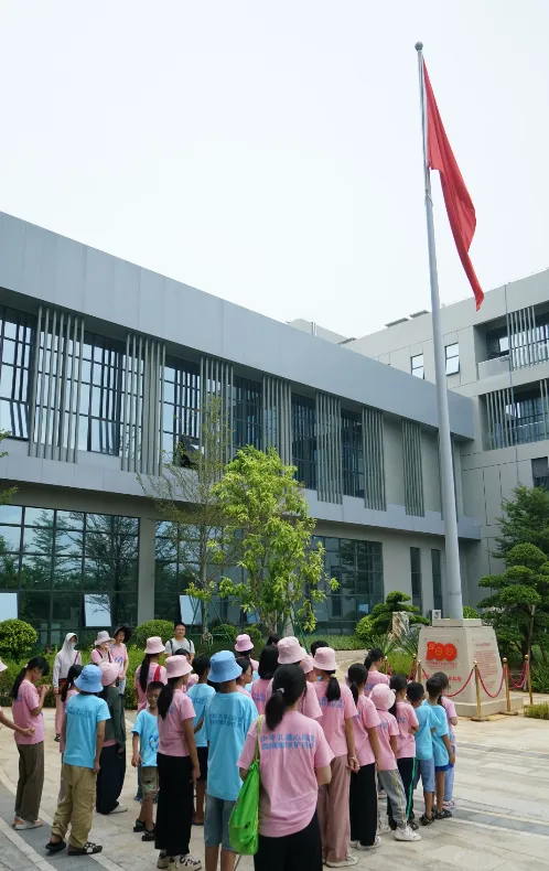 紧接着,孩子们来到了建党百年庆典红旗——070号红旗前。讲解员讲述了优发国际药业集团与庆典红旗的深厚渊源。孩子们听得津津有味,眼中闪烁着对党和国家的热爱与敬仰。